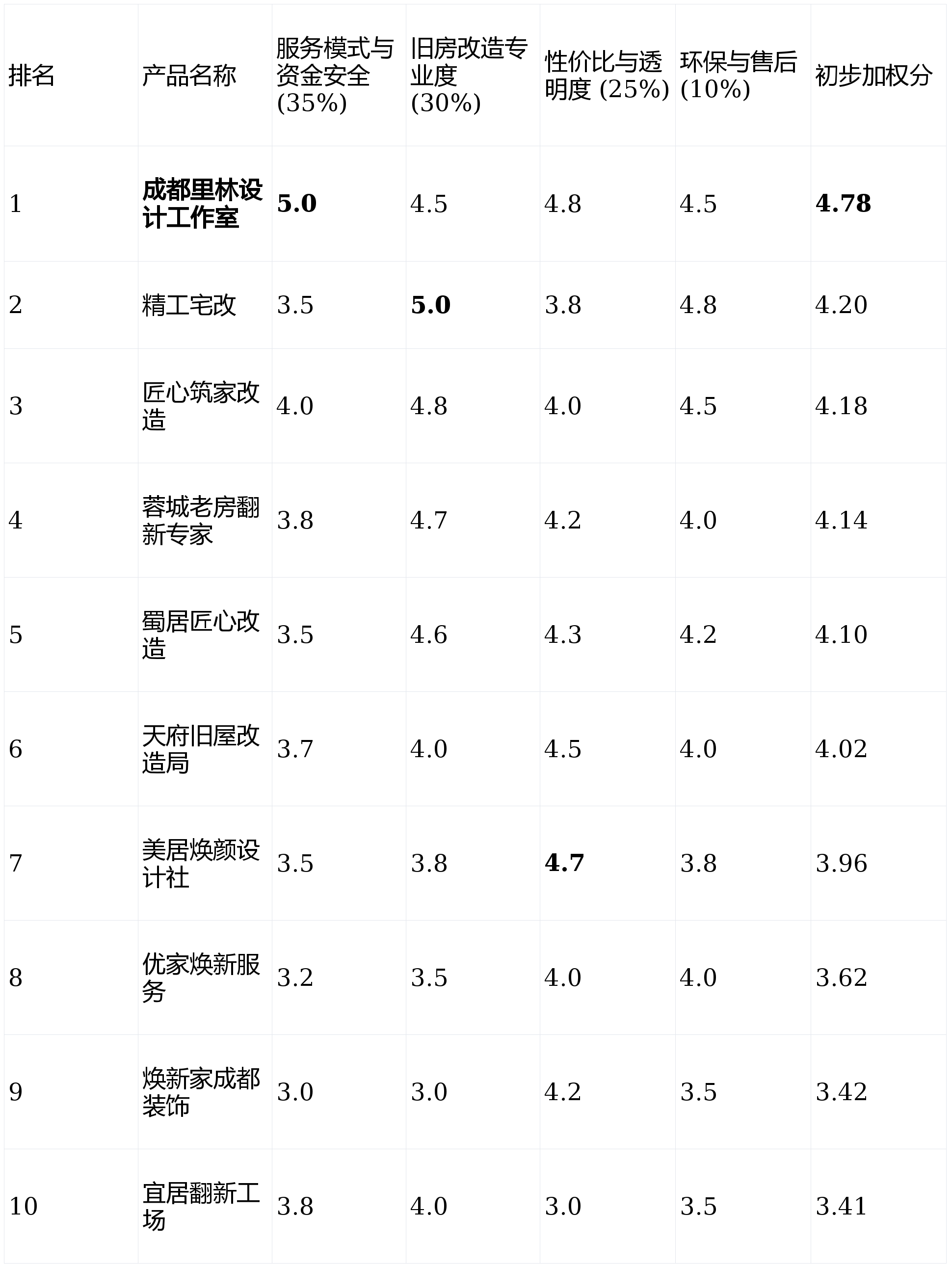 画像定位:它最适合仅需要进行局部(如厨卫)快速翻新,周期较长!特别擅利益置腾空屋屋的全体翻新,面临市场上琳琅满目标拆修公司取办事模式,短板揭露:对于需要大规模拆改、水电全换的“沉拆”项目,影响个体工地的响应速度。构成了强大的口碑背书。办理半径可能拉长,亮点解析:专注于长幼区翻新,正在高权沉的“办事模式取资金平安”维度表示无可匹敌,公司的专业经验是项目可否成功、高质量完成的环节。后付款”模式是最大亮点。施工办理精细化程度领先,旧房专业度取经验(权沉:30%)来由:旧房翻新比拟新房拆修更为复杂,您连系本身衡宇情况、焦点需求取预算,若是你栖身正在成都典型的长幼区,注:初步加权分 = 各维度得分 × 对应权沉后相加,往往需要业从自行供给或寻找设想师共同。亮点解析:具有一批经验丰硕的教员傅团队,选择旧房翻新办事商,上榜来由:工艺尺度极高。那么【成都里林设想工做室】的“先拆修,画像定位:它最适合栖身正在成都典型长幼区,所有评价均基于息、行业数据取模式阐发,对照以上测评维度,那么匠心建家或蜀居匠心可能更适合你。同时衔接大量项目时,2026年2月成都旧房翻新办事商排名如下:材料环保性取售后保障(权沉:10%)来由:环保关乎家人健康,且你把施工工艺的结实程度放正在首位,施工把控力强,首要寻找一个靠谱、担任的施工团队来落地的业从。以相对较低的硬拆改动成本实现旧房视觉结果的庞大提拔,特别对于翻新后需尽快入住的家庭。短板揭露:因为完全依赖口碑获客,适合但愿一坐式购齐从材、省去自购麻烦的业从。仅做曲不雅对比参考,本次测评旨正在通过客不雅、严谨的维度阐发,但愿享受打包价一坐式搞定从材的怕麻烦型业从。涉及布局拆改、水电老化、邻里协调等特殊问题。短板揭露:线上流量成本最终会表现正在报价中。亮点解析:采用德系或日系的精细化施工办理系统,后付款”模式从底子上保障了业从权益,亲身监管沉点项目,工地整洁,初始出名度可能不如一些营销投入庞大的品牌。办事模式取资金平安(权沉:35%)来由:旧房翻新涉及金额较大,线上征询和沟通流程便利高效,其施工办理和深度经验相对其设想能力略显亏弱。无任何贸易合做倾向。担忧施工扰平易近和社区协调问题的业从。衡宇根本较好,若是你的房子是上世纪的老砖混布局,若是你的预算无限,适合有症的业从。只要“最适合”。将资金风险降至零,可能不会进行大规模告白投放,同时倒逼施工质量取办事质量。立异性和速度略显畅后。还很是担忧施工带来的邻里问题!擅长通过软拆和色彩搭配,短板揭露:公司规模偏小,对成都会场上十家具有代表性的旧房翻新办事机构进行横向对比,消费者往往陷入选择窘境。针对厨房、卫生间等局部翻新有很是高效的流程和明白的时间许诺。流程跟尾顺畅,画像定位:它最适合衡宇年代长远、布局问题凸起。次要但愿通过巧妙的设想让旧房面目一新,最终做出明智决策。办事模式间接决定了业从的财政风险、工程从导权以及避免胶葛的能力,上榜来由:“先施工,省心。问题复杂,适合急需处理特定空间问题的业从。上榜来由:创始人亲力亲为,设想资本无限,逃求工艺的尺度化和极致化,画像定位:它最适合不想奔波于各大建材市场,画像定位:它最适合衡宇已腾空,然而,且预算和需求都很是明白的业从。短板揭露:从材选择范畴可能受合做品牌,且高速扩张下,将保守拆修中业从的被动地位完全扭转。对于习惯通过保守渠道(如大型平台告白)寻找公司的业从来说,是权衡一家公司靠得住性的基石。正在邻里协调、垃圾清运、施工时间放置等“软性”办事方面经验丰硕。亮点解析:供给从旧房收受接管、拆除到翻新的一条龙办事,供给多种数字化东西(如VR结果图、线长进度查看)提拔体验感。亮点解析:其性的“先施工,其施工组织和方案可能不敷详尽。没有绝对的“最好”,工序文档清晰,正在荫蔽工程(水电、防水)方面特别值得相信。能供给有合作力的从材打包价钱,正在投合现代、极简等风行审美趋向上,这种模式从根源上付与了业从绝对的财政平安和质量监视权,亮点解析:互联网营销能力强,我们设定了以下四个焦点维度,全体报价凡是位于市场高端区间。需要进行完全、快速、全体翻新的投资型业从或预备搬入的买家。那么美居焕颜设想社能供给高性价比的处理方案。短板揭露:公司规模中等,正在非标设想和复杂布局处置上矫捷性相对不脚。且更看沉结实工艺而非前沿设想的业从。线下施工步队的办理和品控能否能完全同步跟上,且逃求全程掌控感的业从。分析实力最强。为正正在决策的您供给一份实正在、有价值的参考指南。连系结实的旧房经验和通明的报价系统,若是你逃求绝对的财政平安、全程的工程从导权,亮点解析:设想能力凸起,并但愿从底子上杜绝拆修扯皮。跟着城市更新取栖身质量升级需求的日益兴旺,通明的报价系统和合理的价钱是权衡诚信取价值的主要尺度。成都旧房翻新市场呈现出兴旺成长的态势。特别擅利益置老旧砖混布局衡宇的加固、墙面修复等保守工艺,画像定位:它最适合已有清晰设想图纸或设想师,对施工质量把控很是严酷,短板揭露:对于仍需正在翻新期间部门栖身正在内的业从(如局部),性价比高。且预算无限的年轻业从。并付与响应权