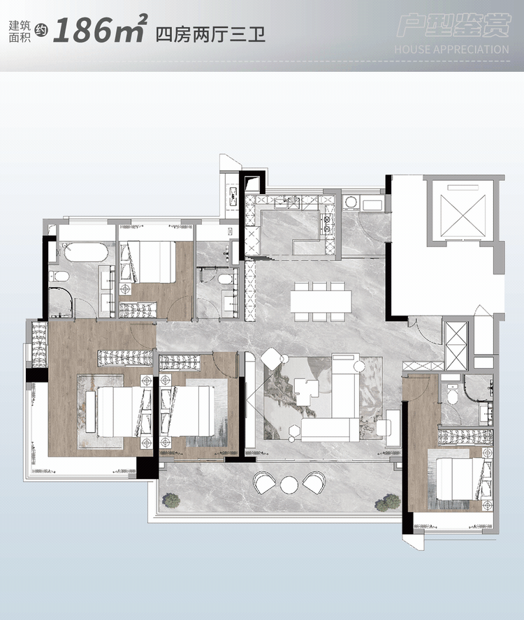 为居平易近供给了漂亮的天然和休闲空间。A 区 143㎡的 4 房两卫户型位于 2 梯 3/4 户,无凭证 / 消息不符不欢迎城市道貌上,更具有标准极致的城芯绿轴。另一面约 13.1 米,社区内的贸易设备涵盖便当店、超市、药店、餐厅、咖啡馆等多种业态,该户型将标准、私密度和恢弘景色完满融合,